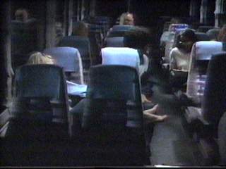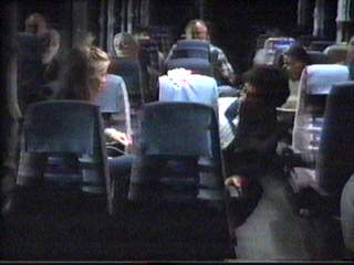 with her bare, beautiful feet hanging over the bus seat. The hour is late