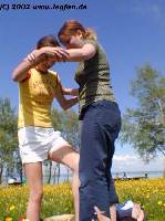Die zwei hübschen teens liessen sich nicht stören als Legfan